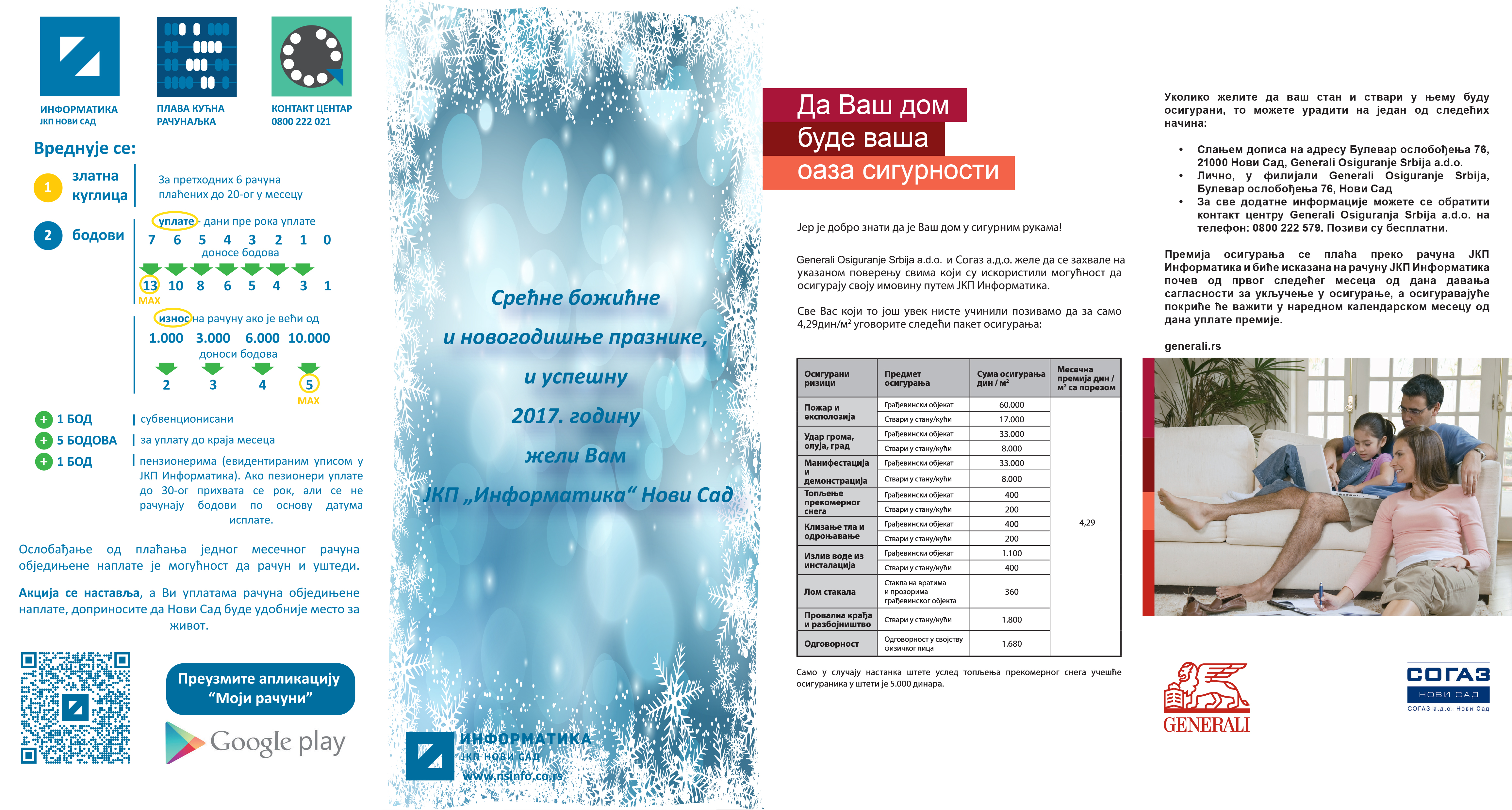 Obrada računa objedinjene naplate komunalno-stambenih usluga za mesec decembar 2016. godine je završena. U distribuciji će se naći 159.296 računa za stambene prostore i 11.628 računa za poslovne prostore.